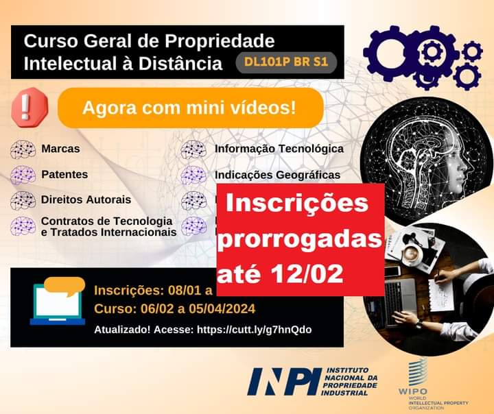 Não perca a oportunidade de participar do Curso Geral de Propriedade Intelectual, agora com muitas novidades, e adquira uma das principais competências para o futuro do mercado de trabalho! INSCRIÇÕES ABERTAS para a 1ª edição de 2024 do Curso Geral de Propriedade Intelectual a distância – DL 101P BR: https://bit.ly/3q4M0qz. Reconhecido como uma das principais […]