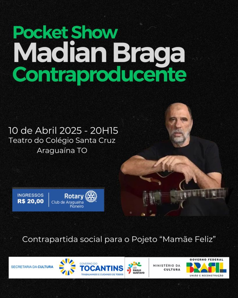 O cantor e compositor araguainense Madian Braga fará uma apresentação histórica no Teatro do Colégio Santa Cruz no dia 10 de abril de 2025, às 20h15 , Teatro do Colégio Santa – Araguaína TO, em um Pocket Show para produção de um conteúdo audiovisual da Lei Paulo Gustavo através da Secretaria de Cultura do Estado […]