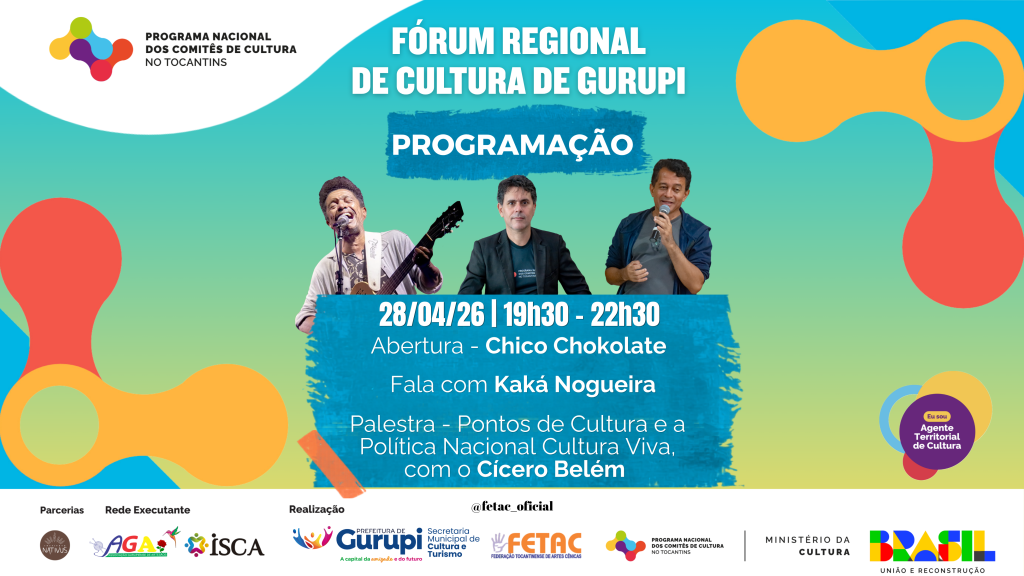 O Comitê de Cultura no Tocantins realiza, nesta quarta e quinta-feira, 28 e 29, o Fórum Regional de Cultura de Gurupi, em parceria com a Secretaria Municipal de Cultura de Gurupi, reunindo artistas, produtores culturais, fazedores de cultura, gestores públicos e a comunidade em geral para dois dias de debates, apresentações artísticas e construção coletiva […]
