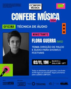No dia 1º, às 19h, o destaque será a mesa “Ocupando todos os espaços na música: Carreiras femininas neste mercado”, com a técnica de áudio Flora Guerra.