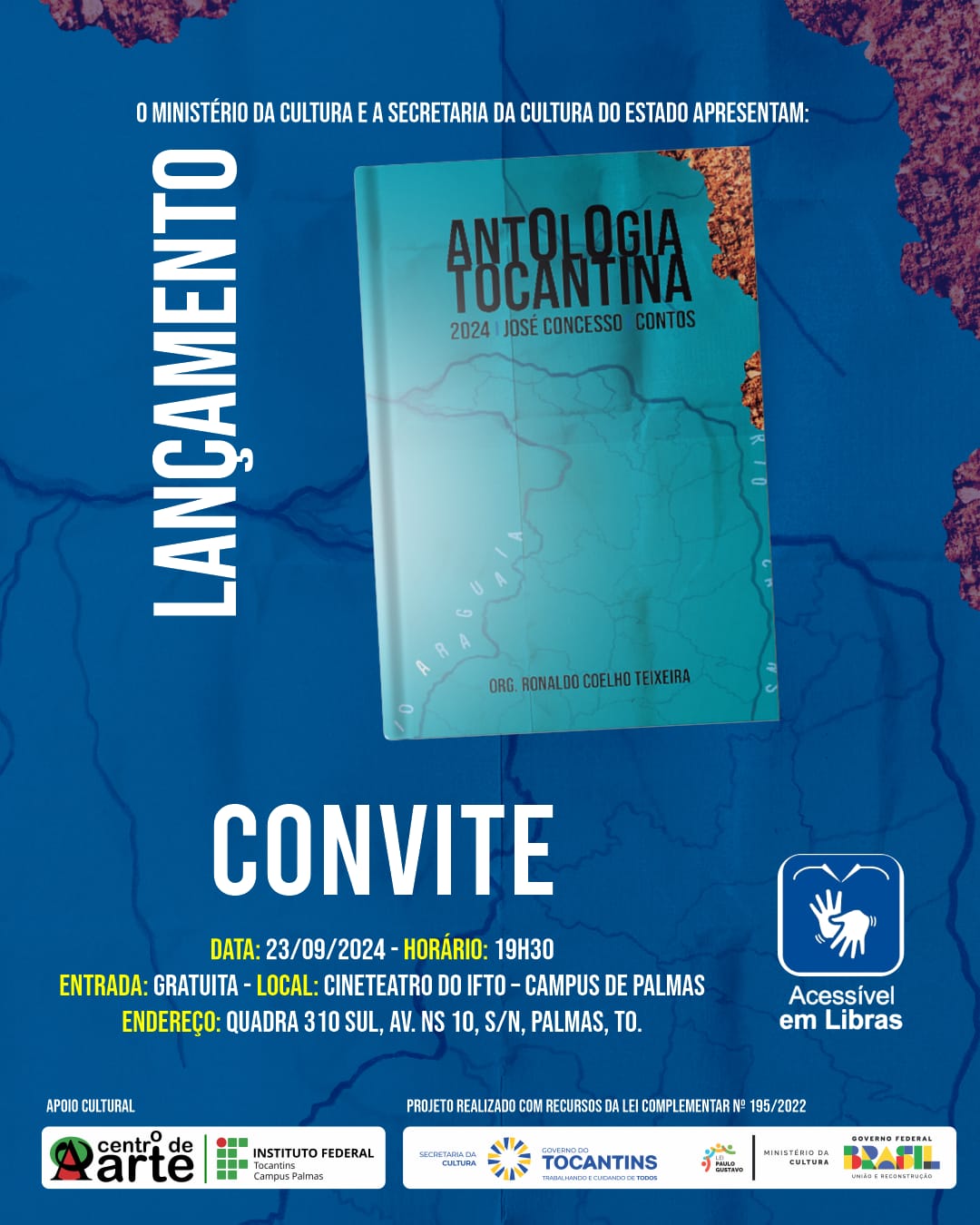 O quê: Livro “ANTOLOGIA TOCANTINA 2024 – JOSÉ CONCESSO – CONTOS”, de Ronaldo Teixeira, realizado no Tocantins pelo Edital da Lei Paulo Gustavo no TO, será lançado em Palmas