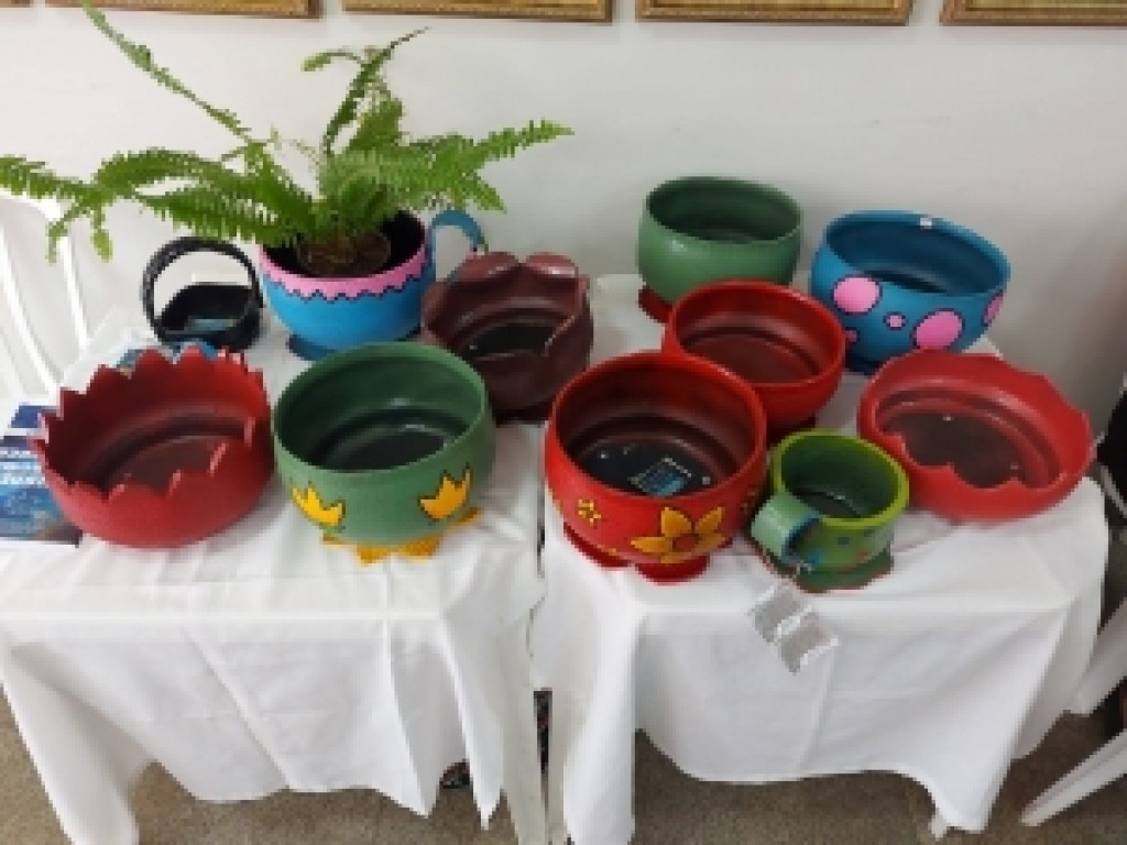 “Há seis anos eu descobri o meu câncer de rim então eu fiquei meio perdida, porque eu tive esse afastamento do trabalho e aí eu ficava só deitada. Então veio a ideia de trabalhar com artesanato e o que eu tinha em casa eram alguns pneus jogados no quintal aí eu decidi fazer algo com eles”, relata Rosinete sobre seu primeiro contato com a arte.