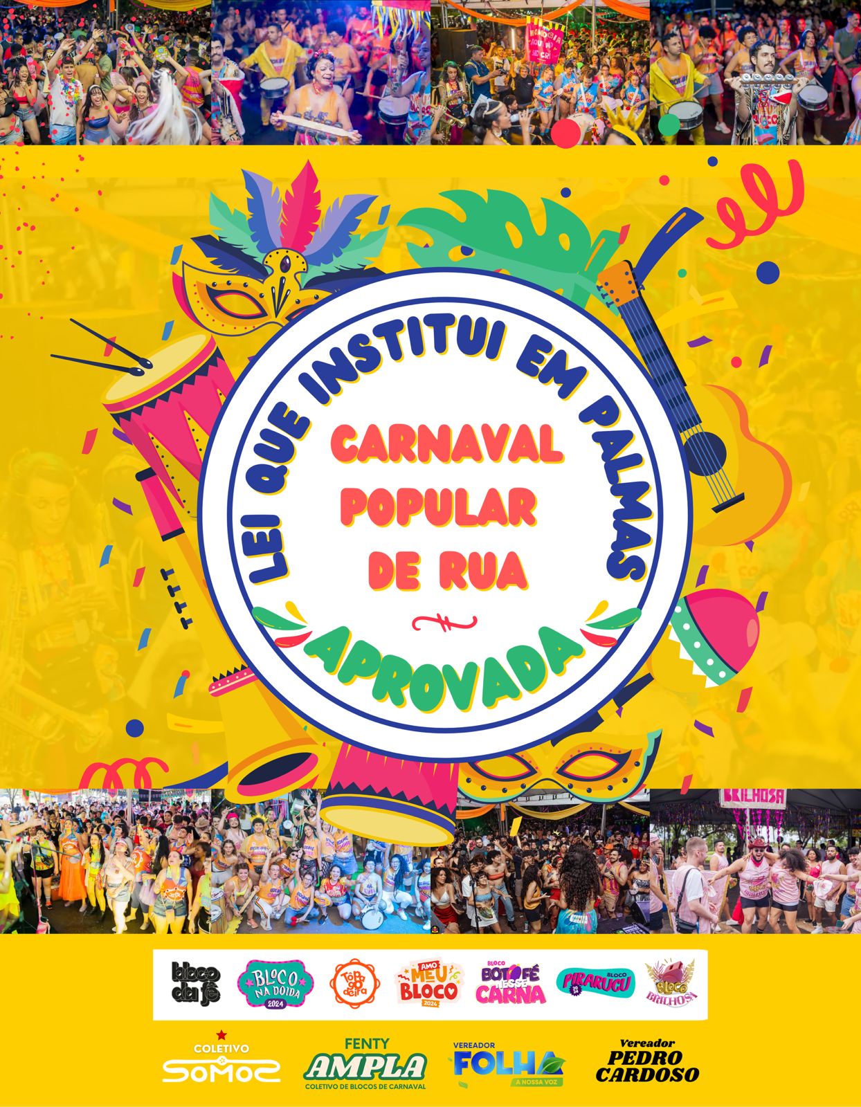 Nesta terça-feira, 26 de novembro, a Câmara Municipal de Palmas aprovou o Projeto de Lei que oficializa o Carnaval Popular de Rua no município. A iniciativa tem como objetivo fortalecer e valorizar os tradicionais blocos carnavalescos, promovendo a cultura popular e incentivando a ocupação das ruas pela comunidade.