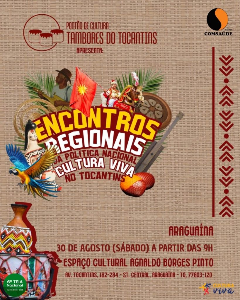 Araguaína recebe, na próxima sexta-feira, 30 de agosto, o Encontro Regional da Política Nacional Cultura Viva. A programação ocorre no Auditório do Espaço Cultural Agnaldo Borges Pinto, das 8h às 22h, reunindo agentes culturais, mestres e mestras da tradição, artistas, gestores e comunidade em um dia de formação, pactuações e celebrações. O evento tem como […]