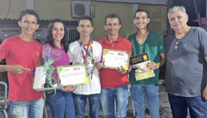 O estudante João Vitor Cordeliquo de Aristeu, 14 anos, que atualmente cursa a 1ª série do ensino médio na Escola Estadual Arlinda Rosa, localizada na cidade de Couto Magalhães, recebeu duas medalhas de bronze conquistadas na 18ª edição da Olimpíada Brasileira de Matemática das Escolas Públicas (Obmep). A solenidade foi realizada na noite da quarta-feira, com a presença de autoridades locais e do professor Paulo Cleber Mendonça Teixeira, da Universidade Federal do Tocantins, que coordena a Obmep na regional de Palmas.