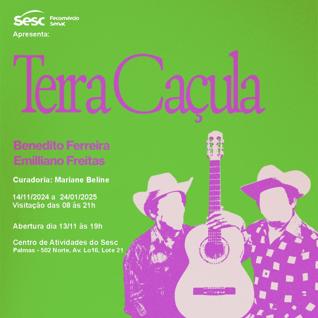 A exposição “Terra Caçula”, em cartaz na Galeria de Artes do Sesc Palmas de 14 de novembro de 2024 a 24 de janeiro de 2025, traz à tona as profundezas das memórias de infância e as influências da música sertaneja por meio das obras dos artistas visuais Benedito Ferreira e Emilliano Freitas. Unindo os estados de Goiás e Tocantins, a mostra estabelece um diálogo visual que percorre as paisagens rurais, tradições e histórias compartilhadas, propondo uma reflexão sobre  identidades e o tempo.