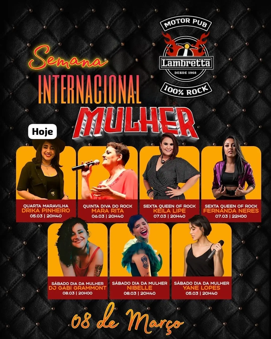 O Lambretta Motor Pub reafirma sua tradição como espaço de resistência e cultura, proporcionando noites vibrantes em que a música é sinônimo de empoderamento. Uma programação impecável para celebrar o Dia Internacional da Mulher em alto e bom som!