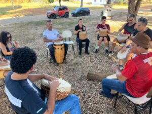 A educadora musical e socióloga Selma Noleto também esteve presente e complementou que ficou encantada com tudo o que foi vivenciado durante a oficina. “Esse trabalho de pesquisa e resgate dessa instrumentação têm um papel social muito importante, pois transmite um conhecimento de uma arte que abrange a ancestralidade presente na cultura do Tocantins. O som dos tambores é ancestral e cultural, os ritmos e sequências de diversos toques, nos remetem à nossa história, a nossa origem, nosso corpo vibra e dança no ritmo das batidas dos tambores tradicionais. Um privilégio participar de um momento de tamanha riqueza!”, expressou a professora.