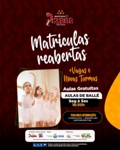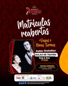 Desde o mês de março, estão abertas novas turmas para as modalidades de capoeira, ballet e teatro, com novos dias e horários, consequentemente abrindo mais vagas para a comunidade, trata-se do projeto “O Artista do Amanhã” que será realizado com recursos da Lei Paulo Gustavo, geridos pela Fundação Cultural de Palmas.