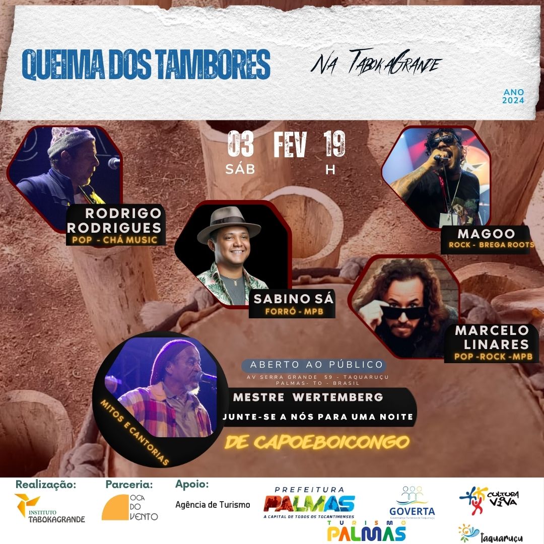 O Instituto TabokaGrande, com o apoio da AGTUR – Agência de Turismo de Palmas e da Goverta – Governança Turística de Taquaruçu, tem o prazer de apresentar a tão esperada Queima dos Tambores 2024. Este evento, que antecede o carnaval de Taquaruçu, marca o início do calendário turístico da região e promete um espetáculo sem igual para moradores e visitantes.