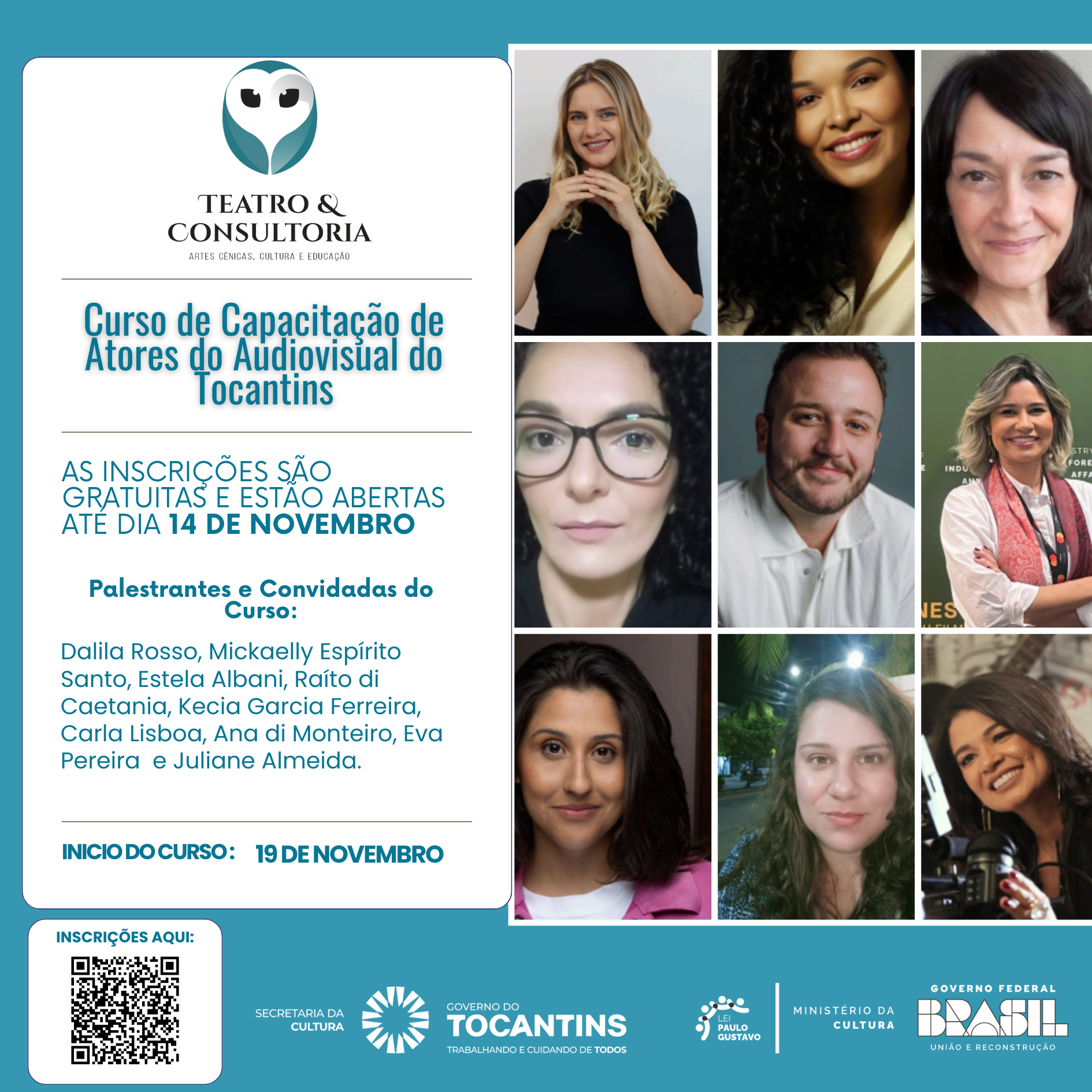Desde o dia 31 de outubro, atores e aspirantes do Tocantins têm a oportunidade de se inscrever no curso, que visa formar talentos para o mercado audiovisual com uma abordagem prática e atualizada. O programa inclui aulas online, gravações de cenas presenciais e orientação de profissionais experientes. Os conteúdos abrangem criação de currículo, cartas de intenção, vídeos de apresentação e técnicas de atuação. A programação completa também conta com duas lives, dois podcasts e oficinas de feedback personalizado, além de gravações de cenas finais que serão compartilhadas ao final do curso.