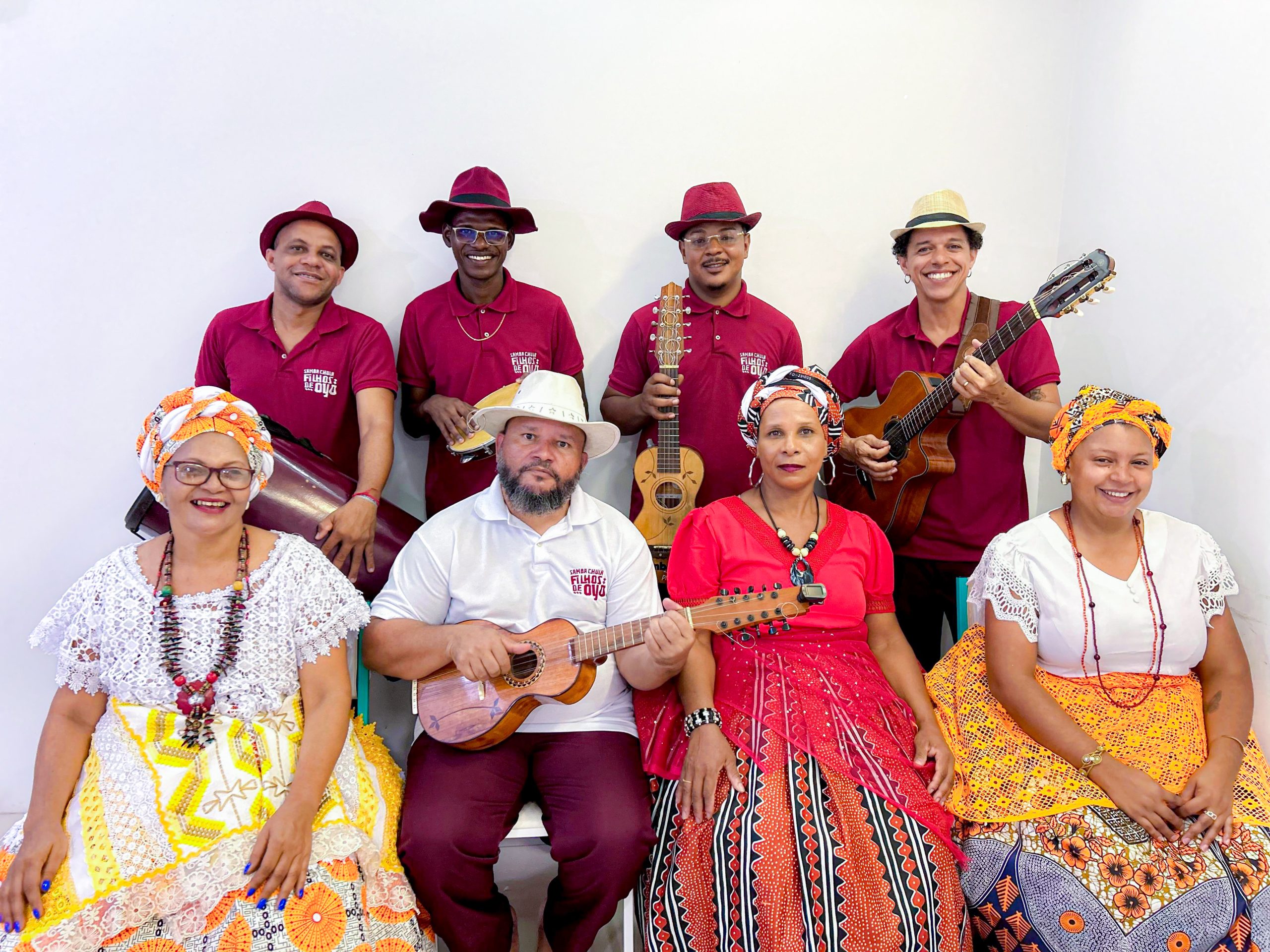 Nascido em Camaçari (BA), o Samba Chula Filhos de Oyó foi fundado em 2013 por Mestre Plínio (violeiro e cantador) e Mestra Joseane (sambadeira), discípulos do lendário Mestre João do Boi. Com 12 integrantes, o grupo mantém viva a tradição do samba chula, um gênero que surgiu nos canaviais do Recôncavo Baiano, misturando batuques africanos, violas portuguesas e cantos de lamento.