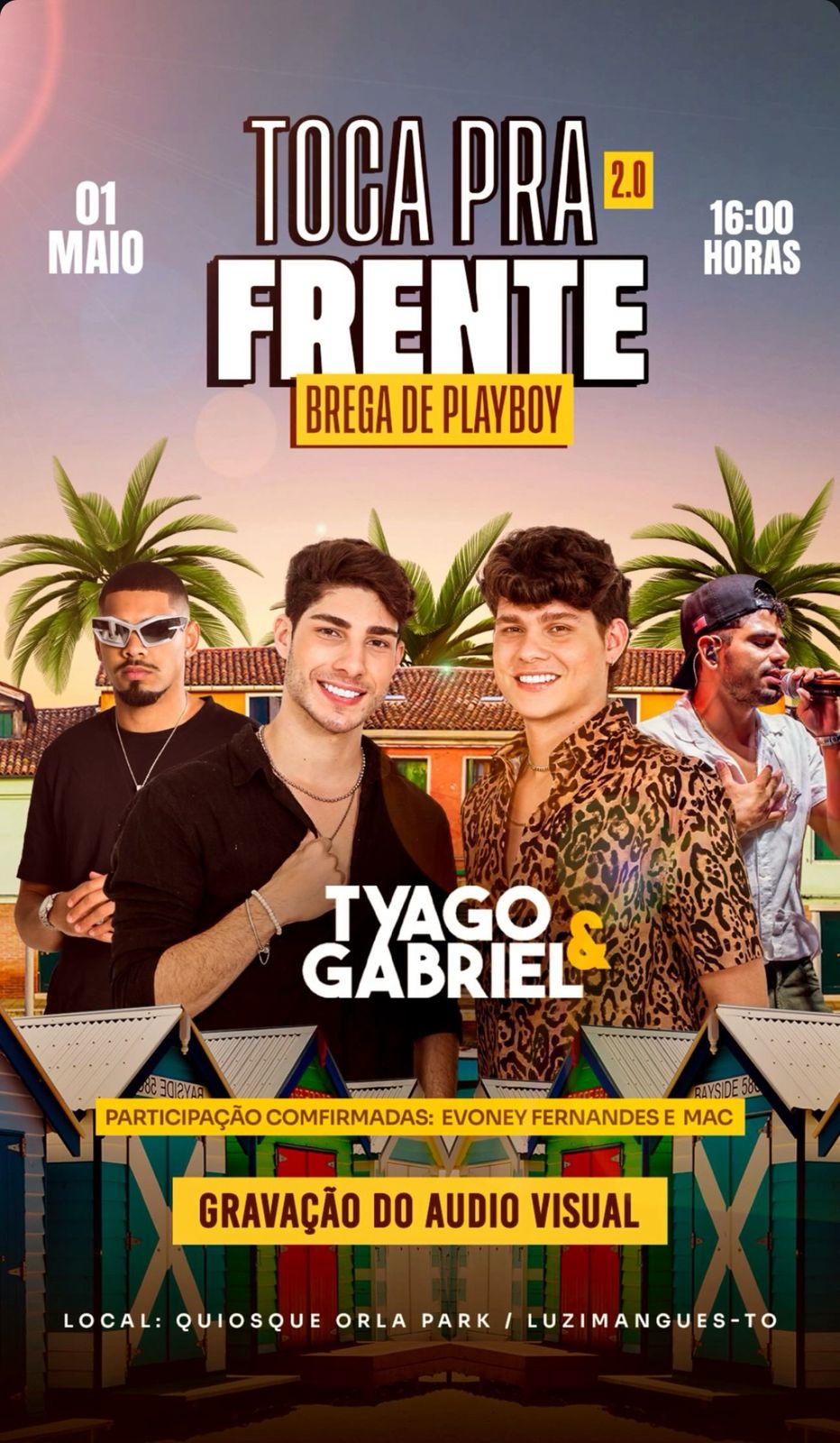A dupla sertaneja Tyago & Gabriel prepara um marco em sua carreira com a gravação de um show exclusivo em Luzimangues (TO), no próximo dia 01 de maio de 2025. O evento, com entrada gratuita, promete emocionar o público com participações especiais, músicas inéditas e uma surpresa secreta a ser revelada durante o espetáculo. A gravação marca o início de uma turnê que passará por seis cidades do Tocantins, levando um repertório vibrante e inédito aos fãs.