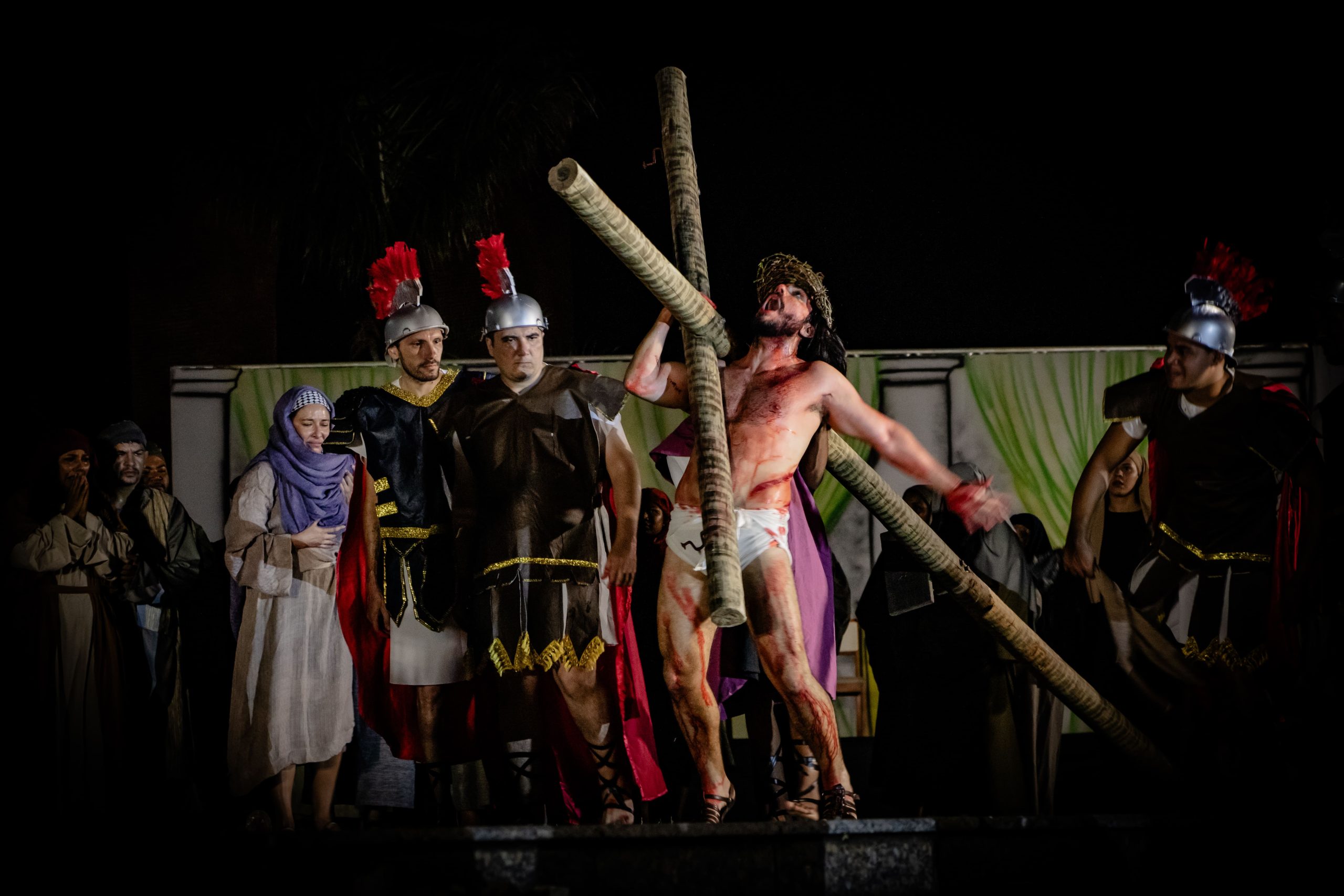 Com as arquibancadas e cadeiras completamente lotadas, a grandiosa montagem transportou o público para os últimos momentos da vida de Jesus Cristo, em um espetáculo marcado pela sensibilidade, beleza cênica e força dramática. No centro da cena, mais de 100 artistas e técnicos se revezaram entre cenários, coreografias e interpretações que comoveram do início ao fim do espetáculo.