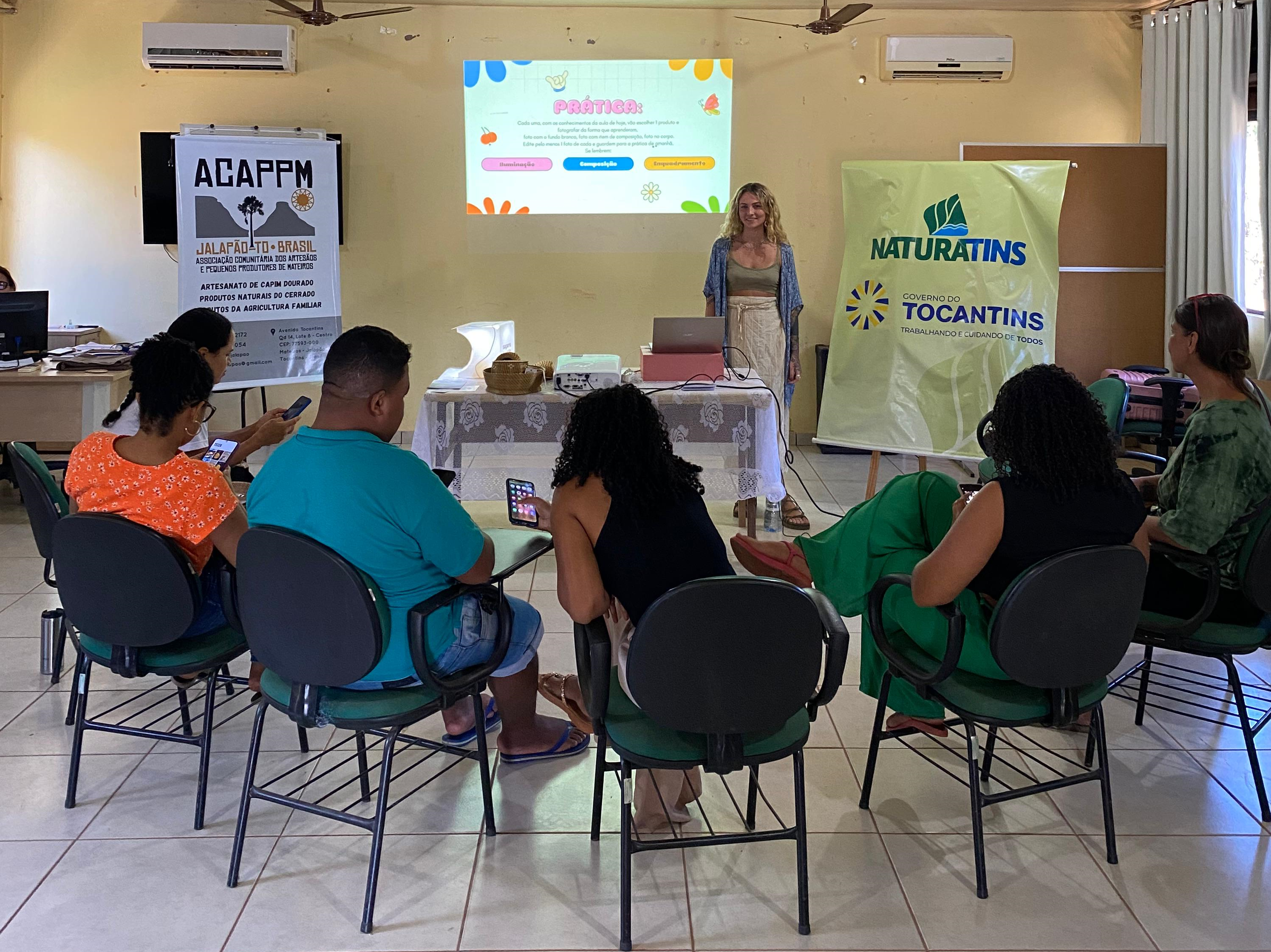 Com o objetivo de oferecer aos artesãos locais a oportunidade de aprimorar suas habilidades em técnicas de fotografia para redes sociais, uma ferramenta essencial para a divulgação e comercialização de seus produtos, a agenda foi organizada pela supervisão do Parque Estadual do Jalapão (PEJ) com o apoio da Gerência de Suporte ao Desenvolvimento Socioeconômico do Instituto.